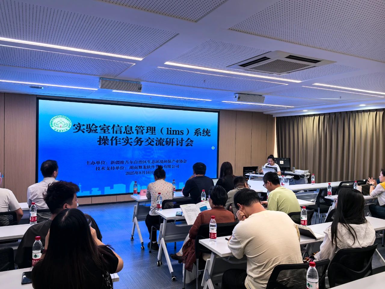 2025年8月16日,由新疆維吾爾自治區(qū)生態(tài)環(huán)境保護產業(yè)協會(以下簡稱 “協會”)主辦,湖南舞龍軟件開發(fā)有限公司提供專業(yè)技術支持的實驗室信息管理系統(LIMS)系統的操作實務研討會,以“線上和線下”結合形式順利舉辦。本次研討會吸引全疆各地會員單位參與,其中線上參會達 350余人次,線下參會35人,與會人員共同聚焦LIMS系統應用為新疆生態(tài)環(huán)境保護產業(yè)